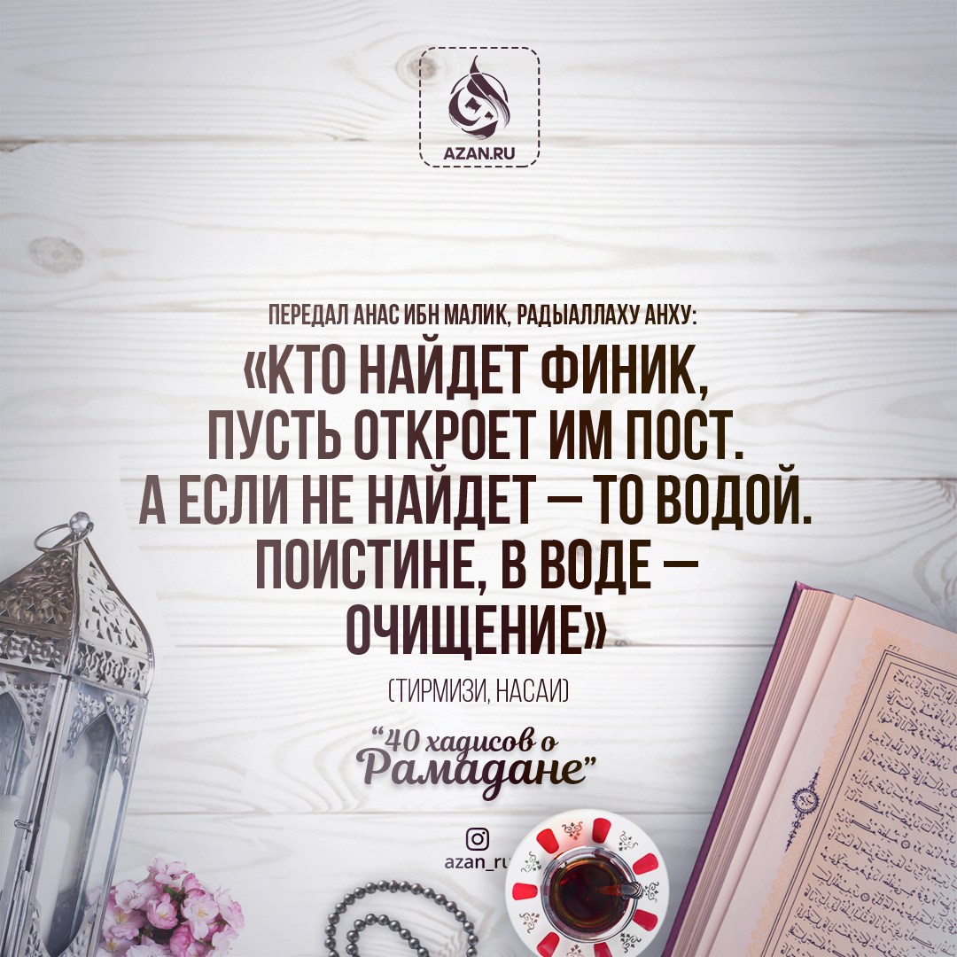 40 хадисов о Рамадане - Кто найдет финик, пусть откроет им пост..