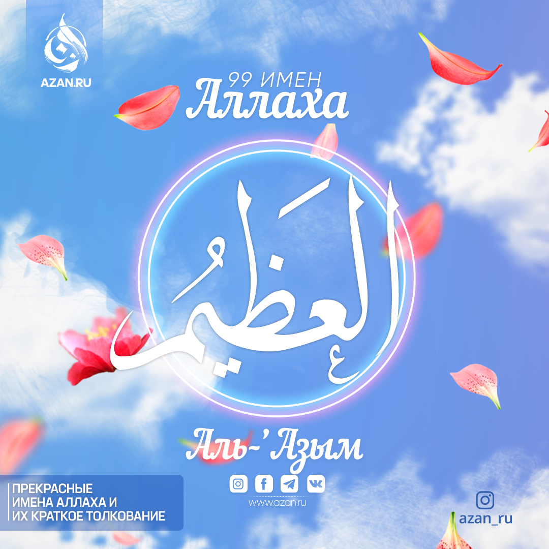 «Он — Возвышенный (не имеющий недостатков и сходства с творениями), Великий» (Сура «аль-Бакара», 255).