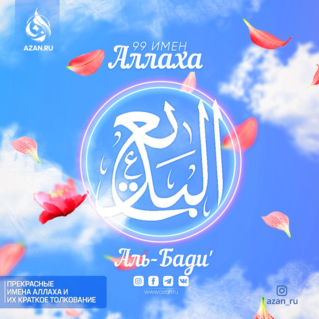 «Имя «аль-Бадиʼ» в этом значении означает «аль-Мубдиʼ», то есть Тот, Кто создал все существующее в соответствии со Своим Знанием, без образца и помощника».