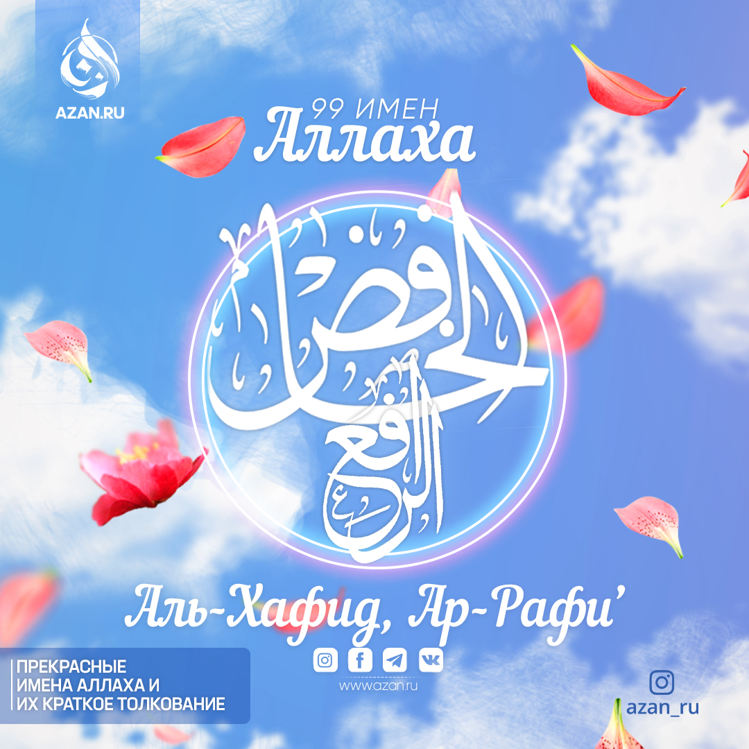 Таким образом, аль-Хафид — Тот, кто принижает кого пожелает их рабов наказанием, а ар-Рафиʼ — Тот, кто возвышает кого пожелает Своей Милостью.