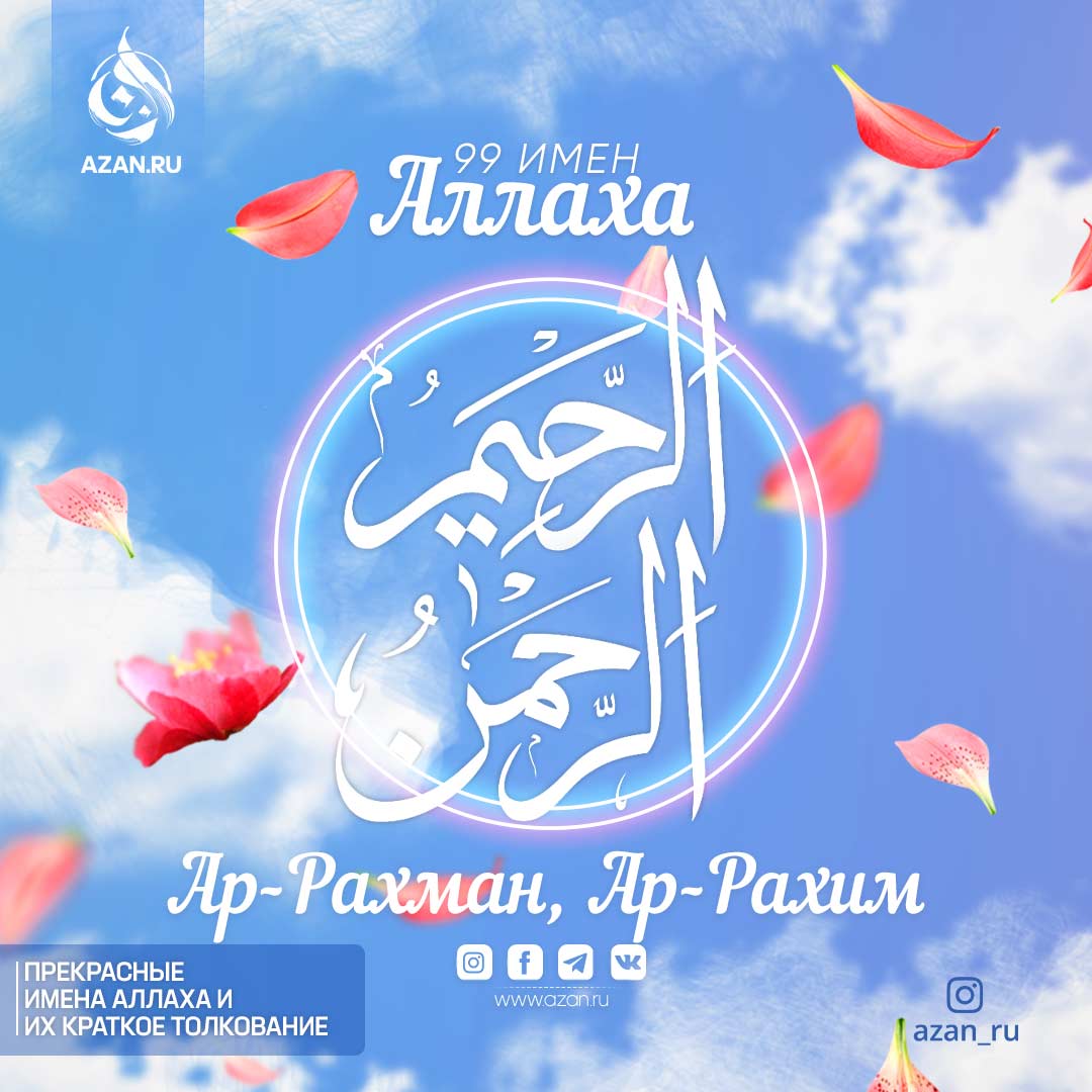 Ар-Рахман – Милостивый, Обладатель Милости, Ар-Рахим – Проявляющий Милость.