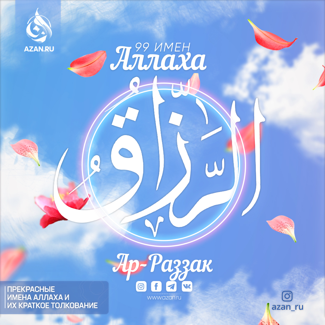 (Сура «аз-Зарият», аят 58).«Поистине, Аллах – Наделяющий пропитанием (ар-Раззак), Обладатель силы, Всесильный»