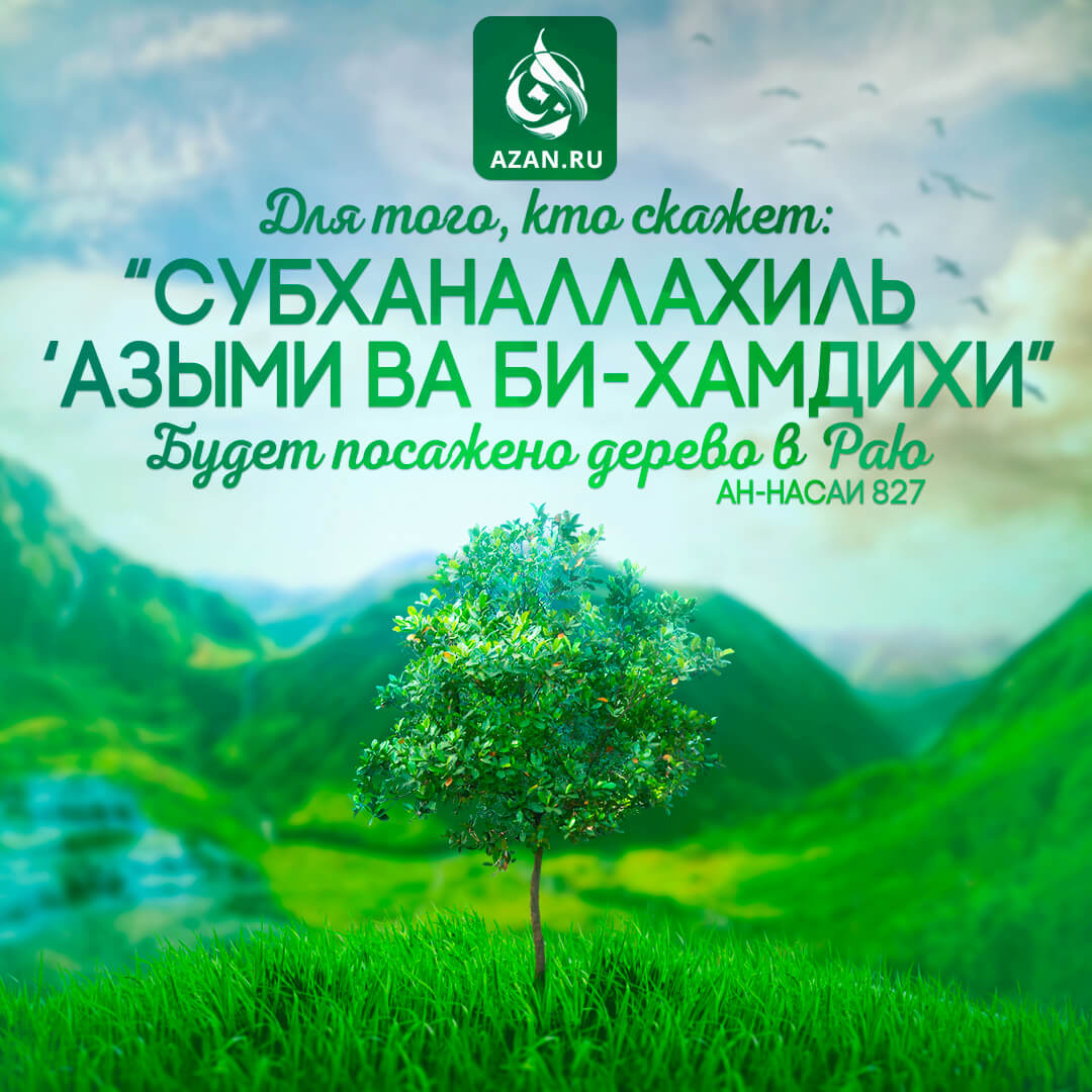 Для того, кто скажет: «Субханаллахиль 'азыми ва би-хамдихи», будет посажено дерево в Раю.