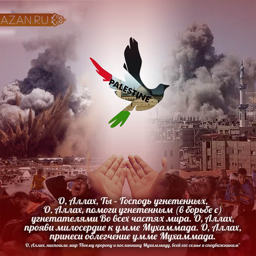 «О Аллах, Ты — Господь угнетенных. О Аллах, помоги угнетенным (в борьбе с) угнетателями во всех частях мира. О Аллах, прояви милосердие к умме Мухаммада. О Аллах, принеси облегчение умме Мухаммада».