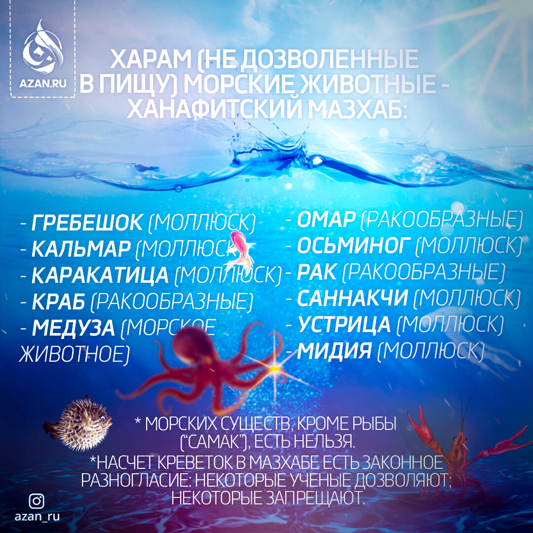 Харам (не дозволенные в пищу) морские животные – ханафитский мазхаб