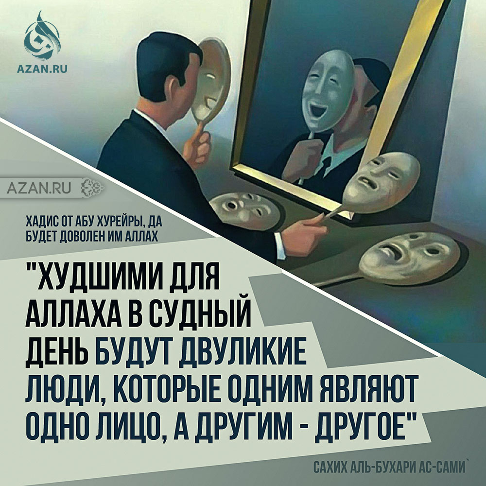 «Худшими для Аллаха в Судный День будут двуликие люди, которые одним являют одно лицо, а другим - другое».