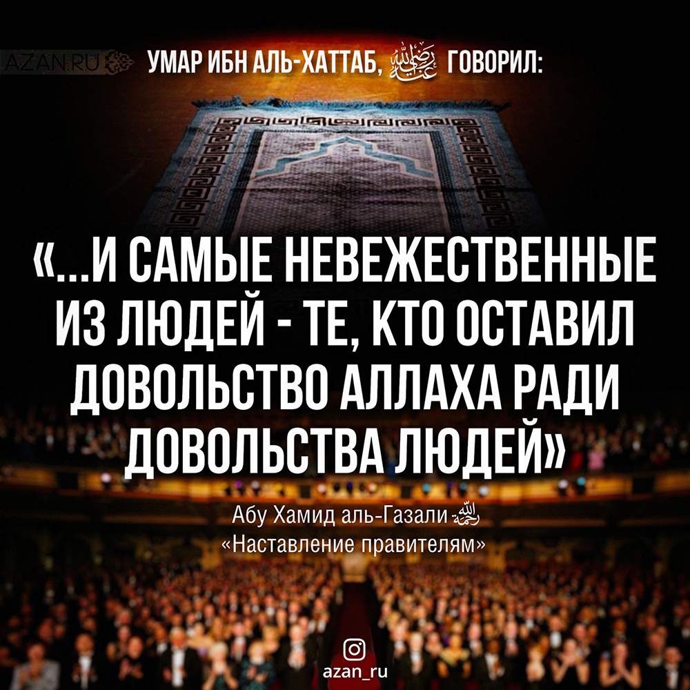 И самые невежественные из людей - те, кто оставил довольство Аллаха ради довольства людей. Абу Хамид аль-Газали "Наставление правителям"
