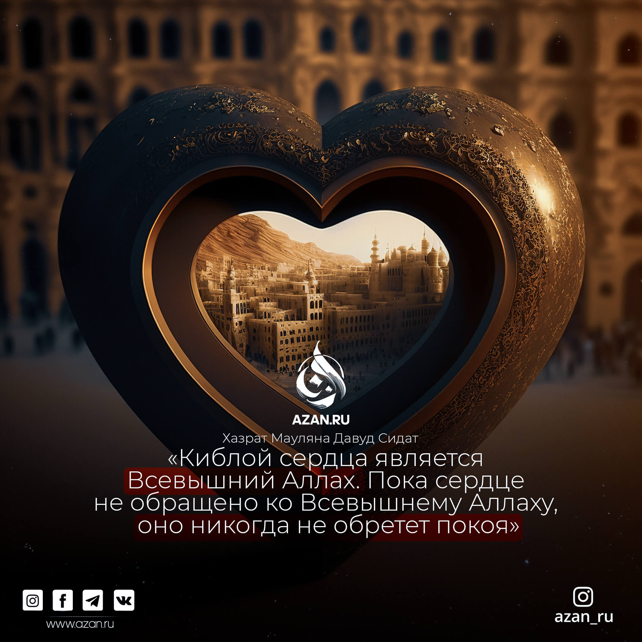 «Киблой сердца является Всевышний Аллах. Пока сердце не обращено ко Всевышнему Аллаху, оно никогда не обретёт покоя».