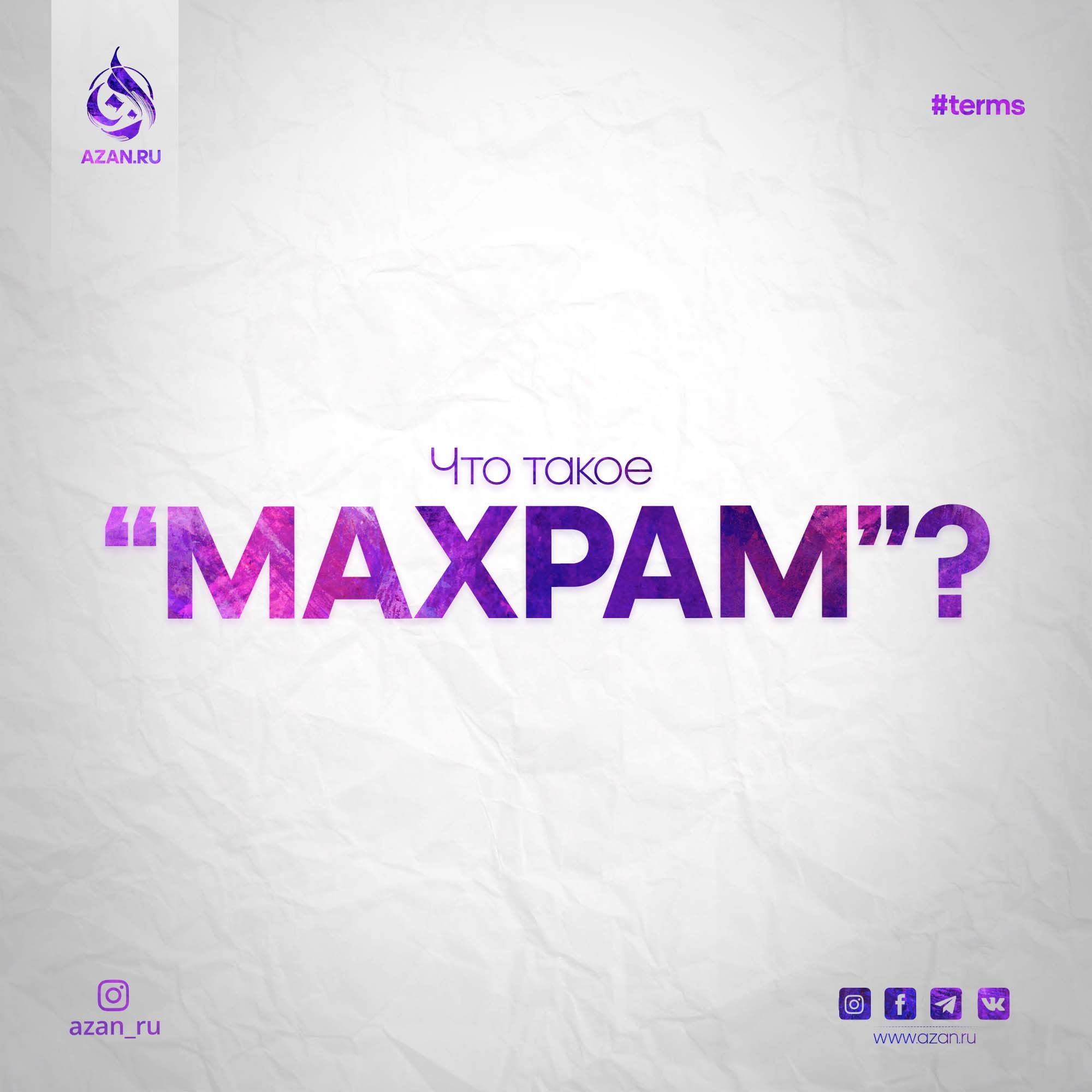 Махрам – это человек, с которым запрещено вступать в брак. Запрет на вступление в брак ещё не исключает опасности искушения. Должна соблюдаться дистанция в общении. Возможны свободные взаимоотношения только с близкими членами семьи – такими, как отец, мать, сын, дочь, брат, сестра, дядя, тетя, бабушка, дедушка.