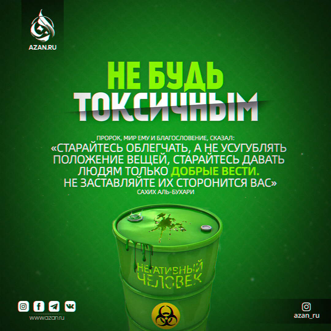 Пророк (ﷺ) сказал: «Старайтесь облегчать, а не усугублять положение вещей, старайтесь давать людям только добрые вести. Не заставляйте их сторонится вас» (Сахих аль-Бухари).